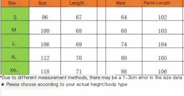 The set features a relaxed, casual fit designed for all body types. We recommend choosing your usual size for a comfortable fit. If you prefer an oversized look, consider going one size up